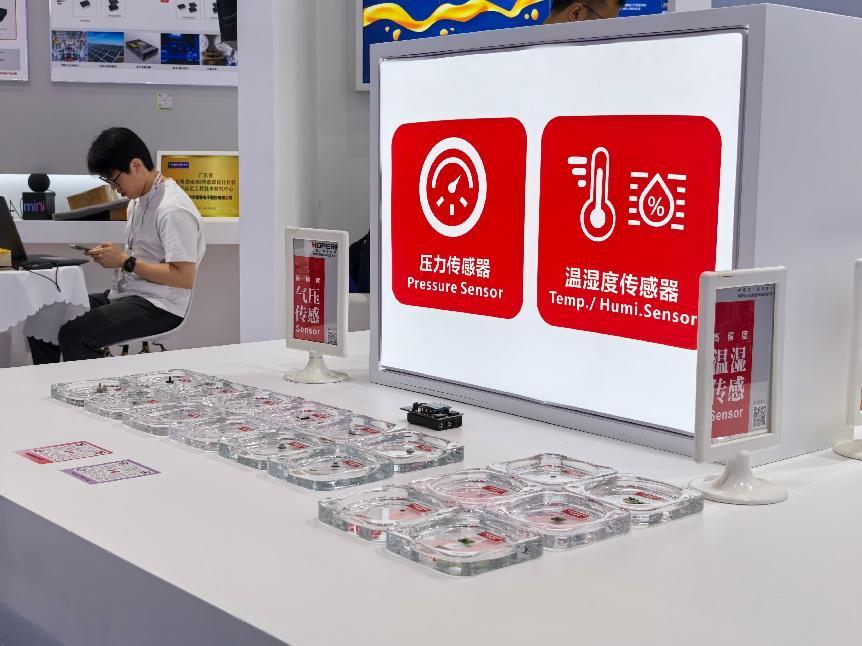 在传感器产品方面,玖鼎微全面展示了其自主研发的、具备超高测量精度的、低功耗与宽量程的压力传感器和温湿度传感器。这些产品不仅能精准地输出环境监测数据,还拥有出色的长期稳定性,可广泛应用在气象站设备、工业压力/温度传感器系统与白色家电等领域。