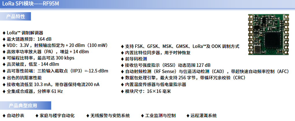 通过融合超远通信距离、低功耗设计、灵活调制模式与高可靠性,RFM95可为低功耗广域网(LPWAN)设备提供兼顾性能与实用性的无线通信解决方案,是连接物理世界与数字平台的关键桥梁之一。